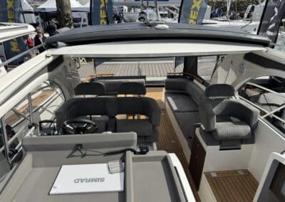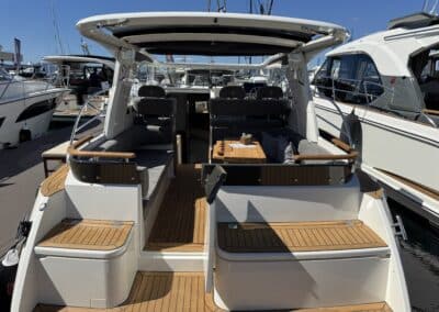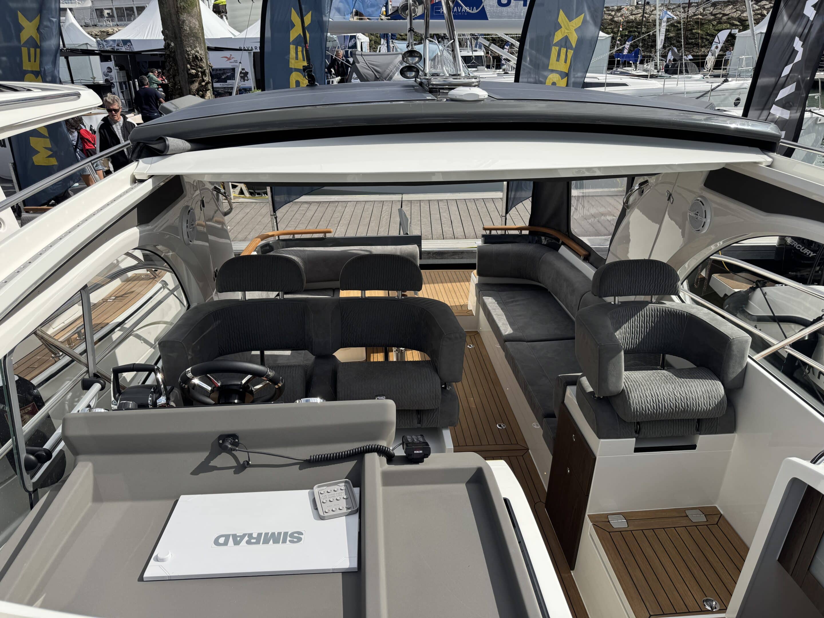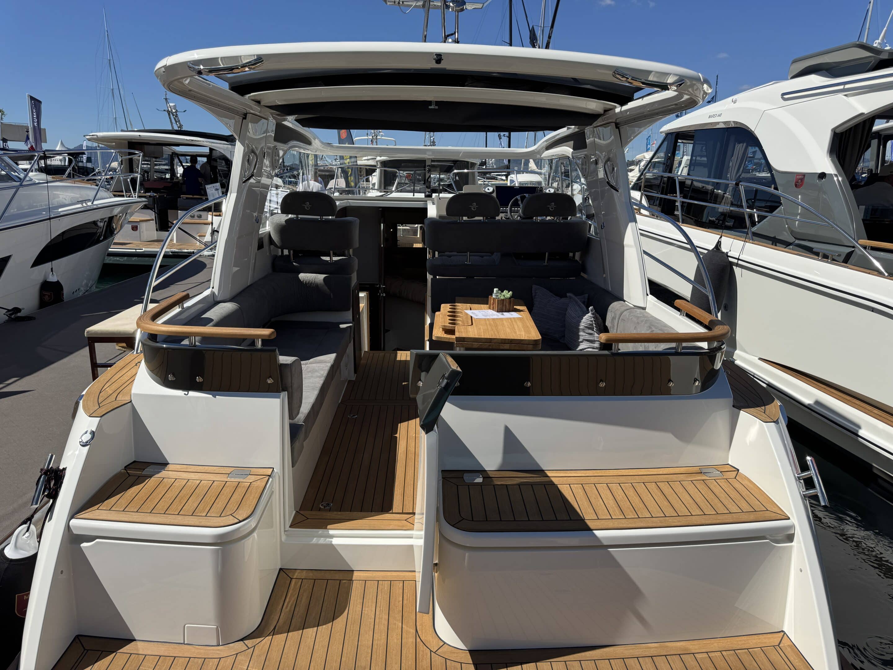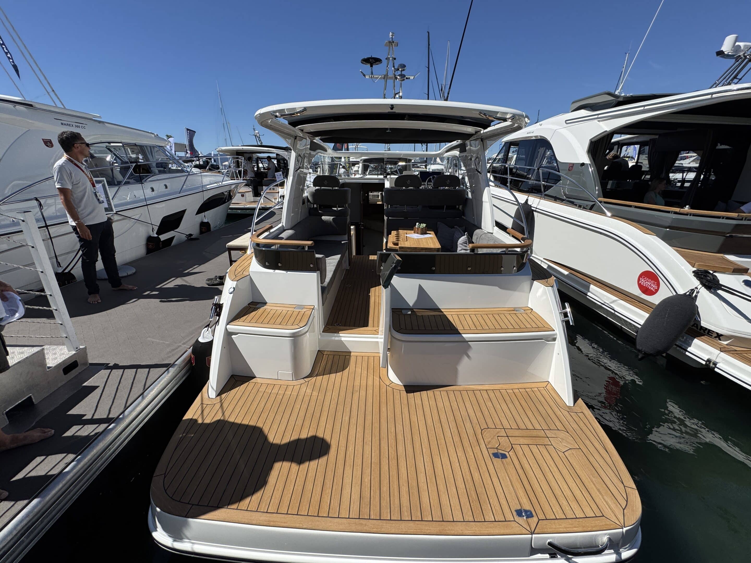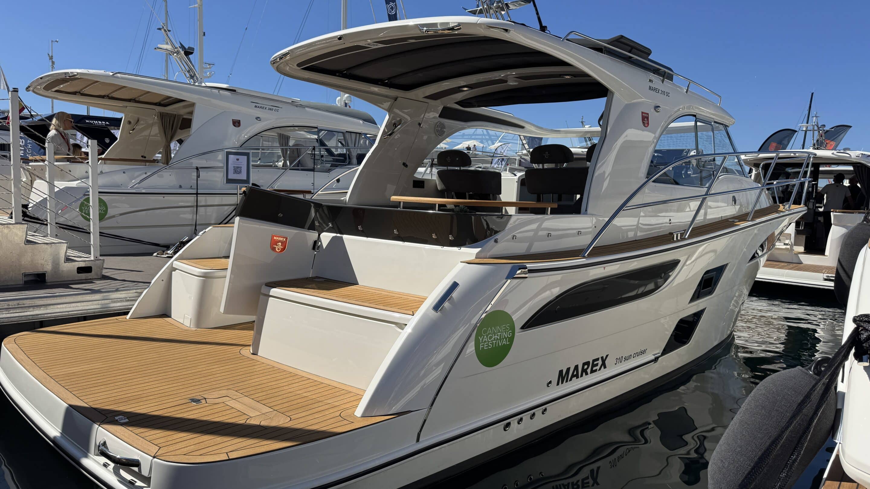Le Marex 310 Sun Cruiser est présenté ici dans une nouvelle version, avec plate-forme de bain allongée, de nouveaux panneaux solaires plus puissants (450W) et une casquette de toit qui reprend la forme du Marex 440 et du nouveau Marex 390. Il est équipé de 2 moteurs Mercury Diesel de 270cv et bénéficie d’un équipement complet de série avec des options essentielles : joystick de manoeuvre, pilote automatique, Humphree Interceptors, électronique Simrad très complète, avec un grand écran de 16 pouces et une VHF. A découvrir ci-dessous.