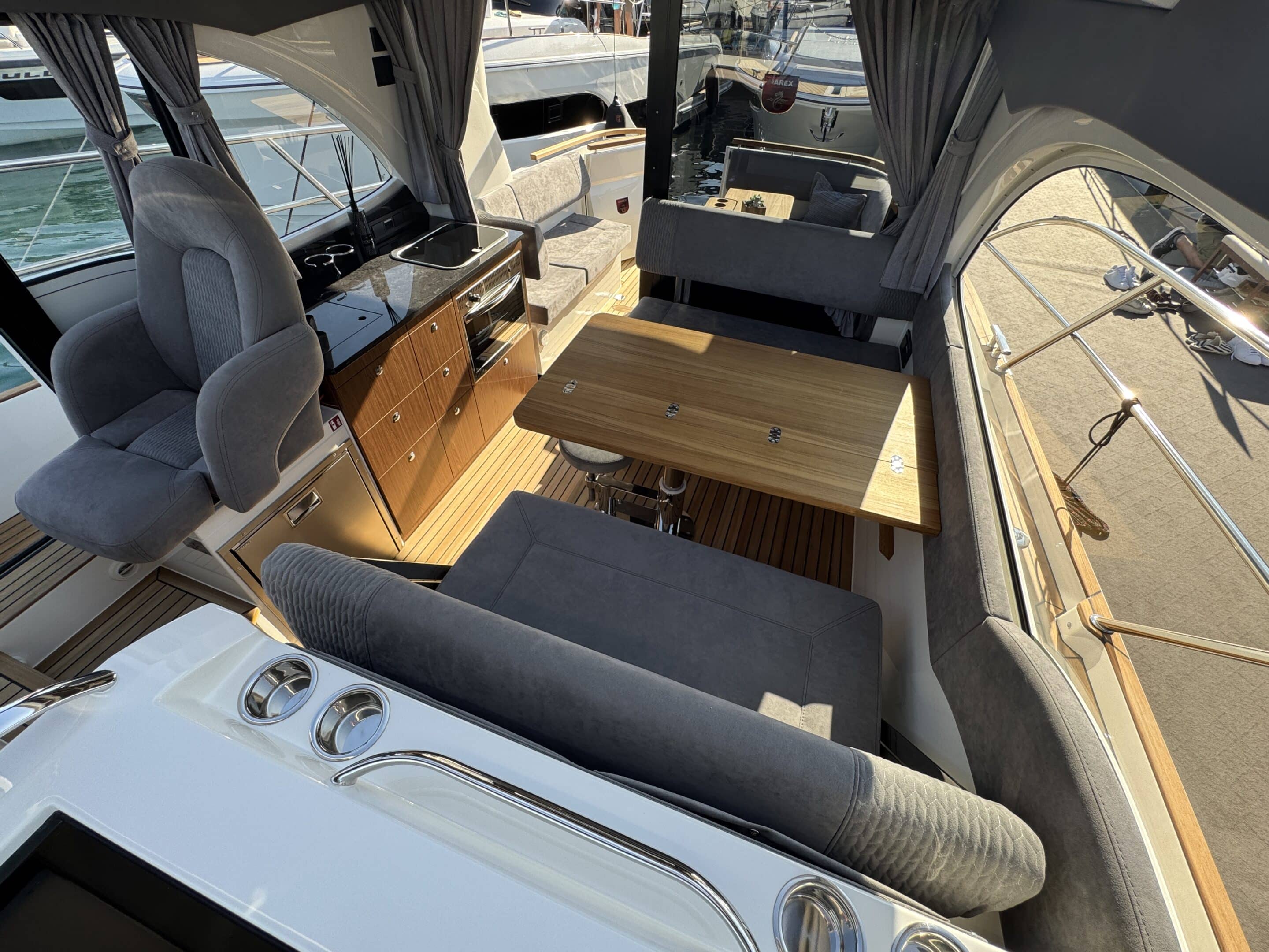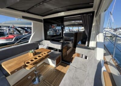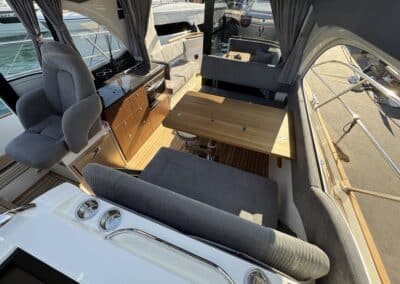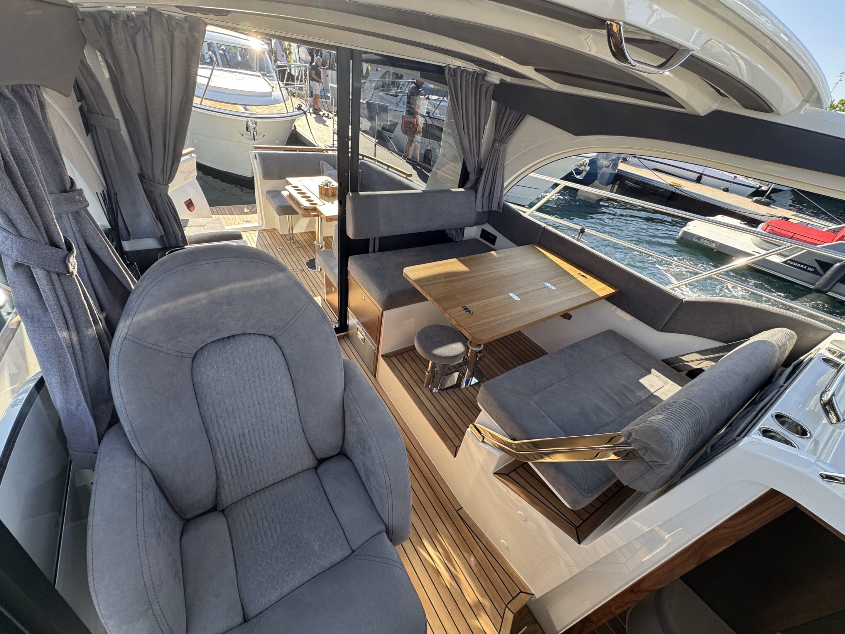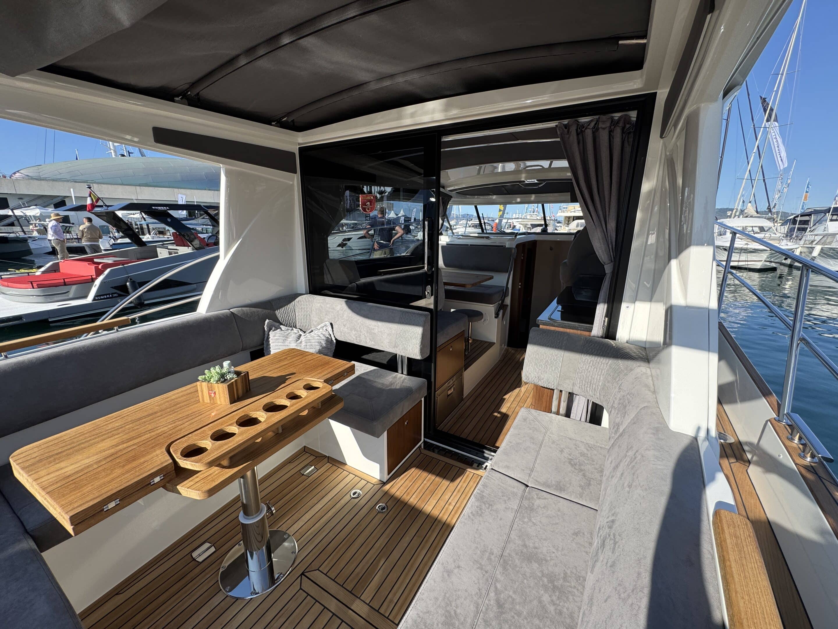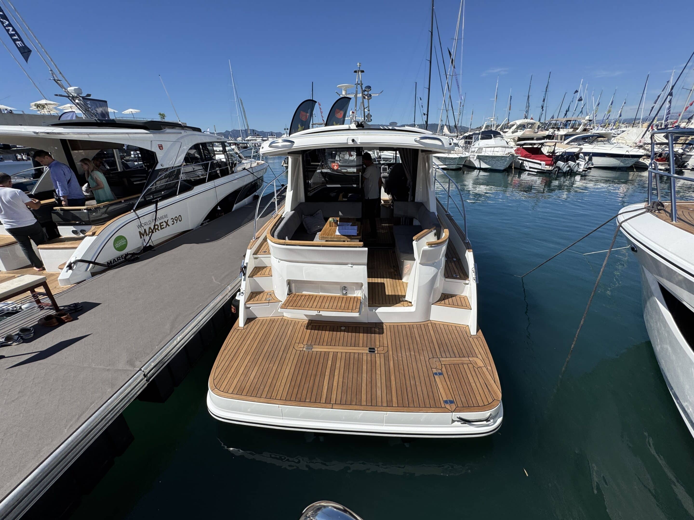 Le Marex 330 Scandinavia est présenté ici dans une version avec plate-forme de bain allongée. Il est équipé de 2 moteurs Mercury Diesel de 270cv et bénéficie d’un équipement complet de série avec des options essentielles : joystick de manoeuvre, pilote automatique… A découvrir ci-dessous.